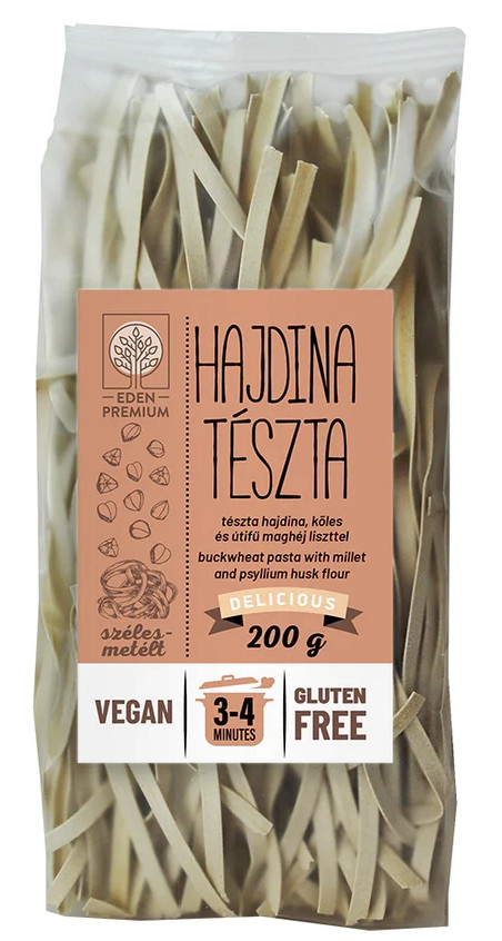 Búza- és gluténmentes, hajdina-, és köleslisztből készült tészta. Választhatják vegánok, vegetáriánusok. Gluténmentes, valamint alkalmazható diétás étrendekben is. Az Eden Premium hajdinatészta saját receptúránk alapján készül tésztaüzemünkben. Állagát-formáját főzés után is megtartja.